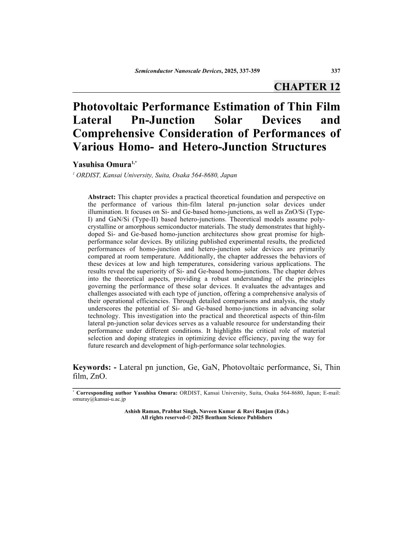 Photovoltaic Performance Estimation of Thin Film Lateral Pn-Junction Solar Devices and Comprehensive Consideration of Performances of Various Homo- and Hetero-Junction Structures, Page 1 of 1