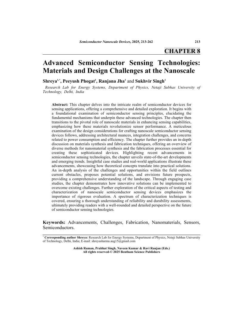Advanced Semiconductor Sensing Technologies: Materials and Design Challenges at the Nanoscale, Page 1 of 1