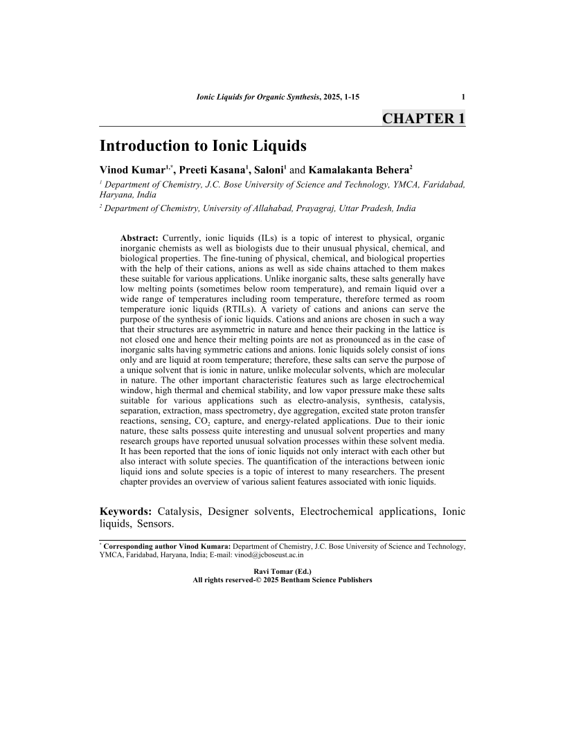 - Source: Ionic Liquids for Organic Synthesis , pp 1-15
