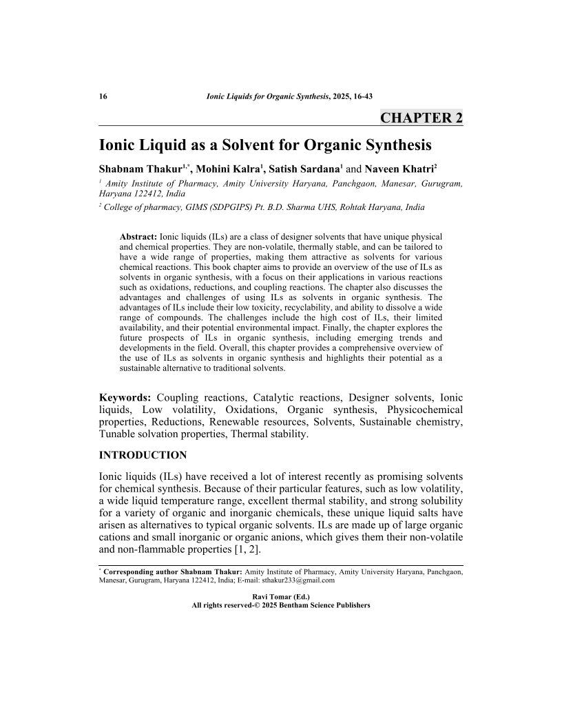 Ionic Liquid as a Solvent for Organic Synthesis, Page 1 of 1