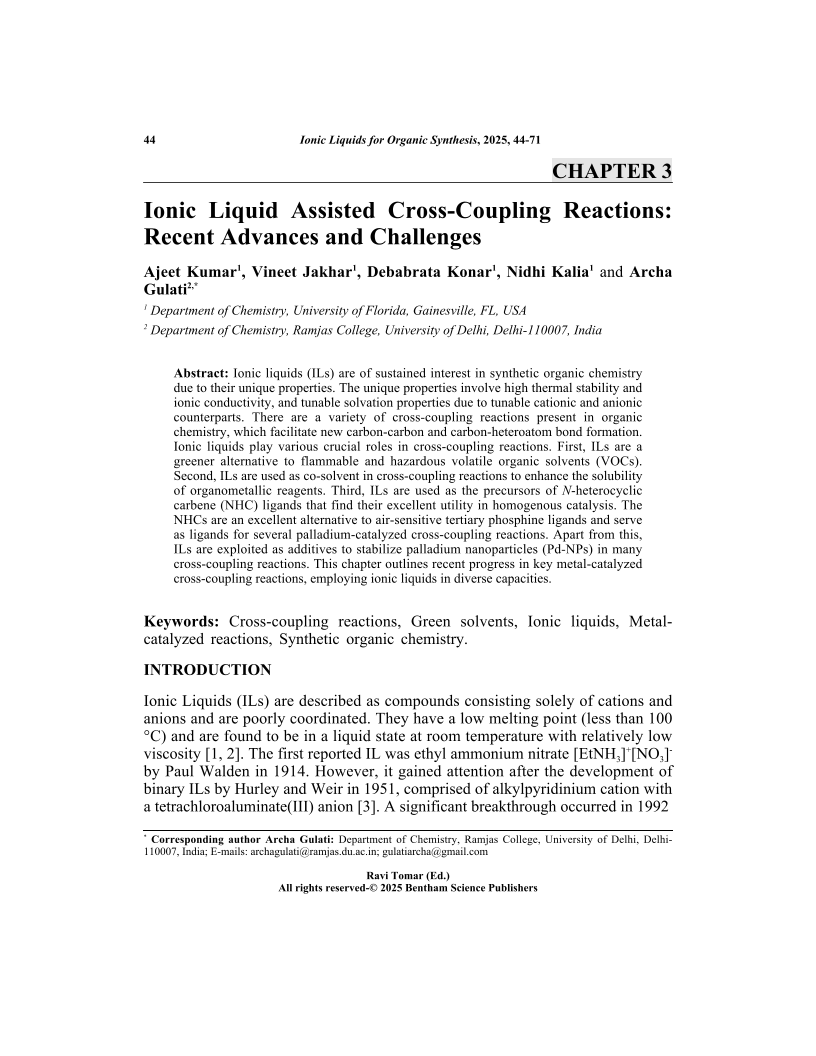 Ionic Liquid Assisted Cross-Coupling Reactions: Recent Advances and Challenges, Page 1 of 1