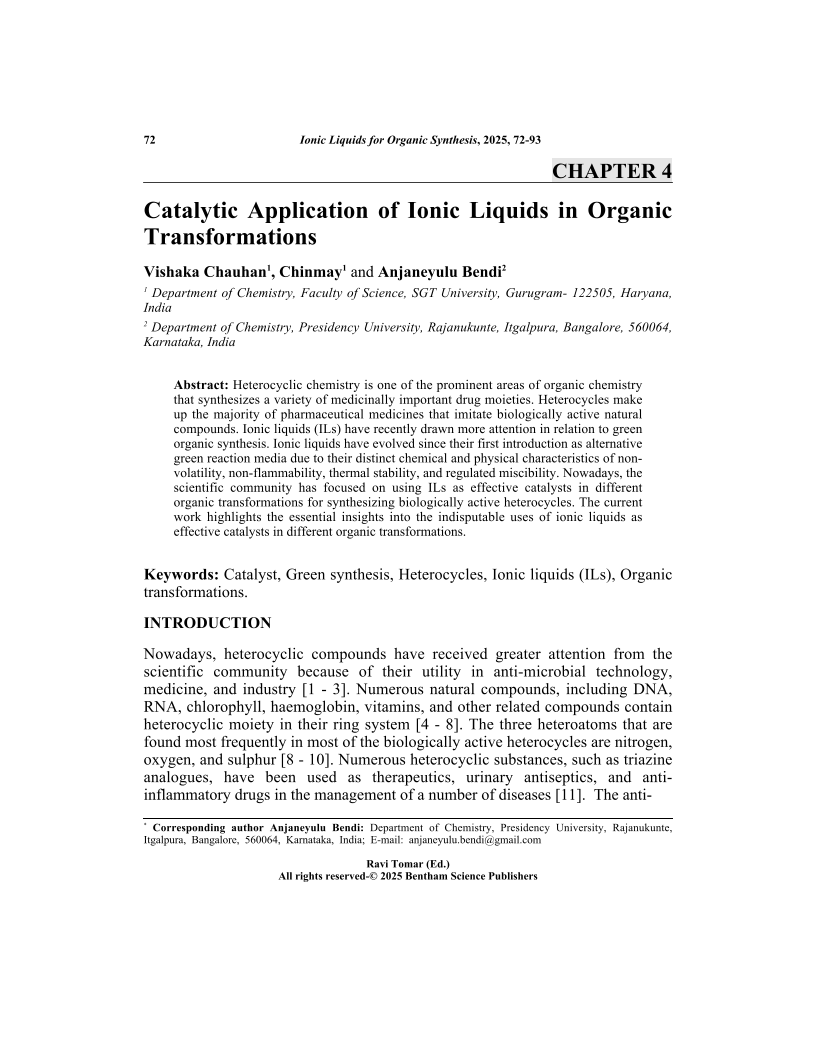 Catalytic Application of Ionic Liquids in Organic Transformations, Page 1 of 1