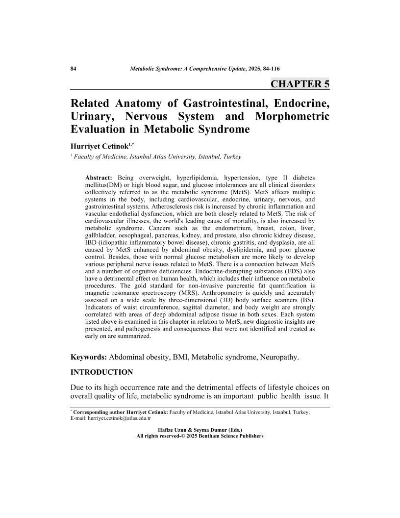 Related Anatomy of Gastrointestinal, Endocrine, Urinary, Nervous System and Morphometric Evaluation in Metabolic Syndrome, Page 1 of 1