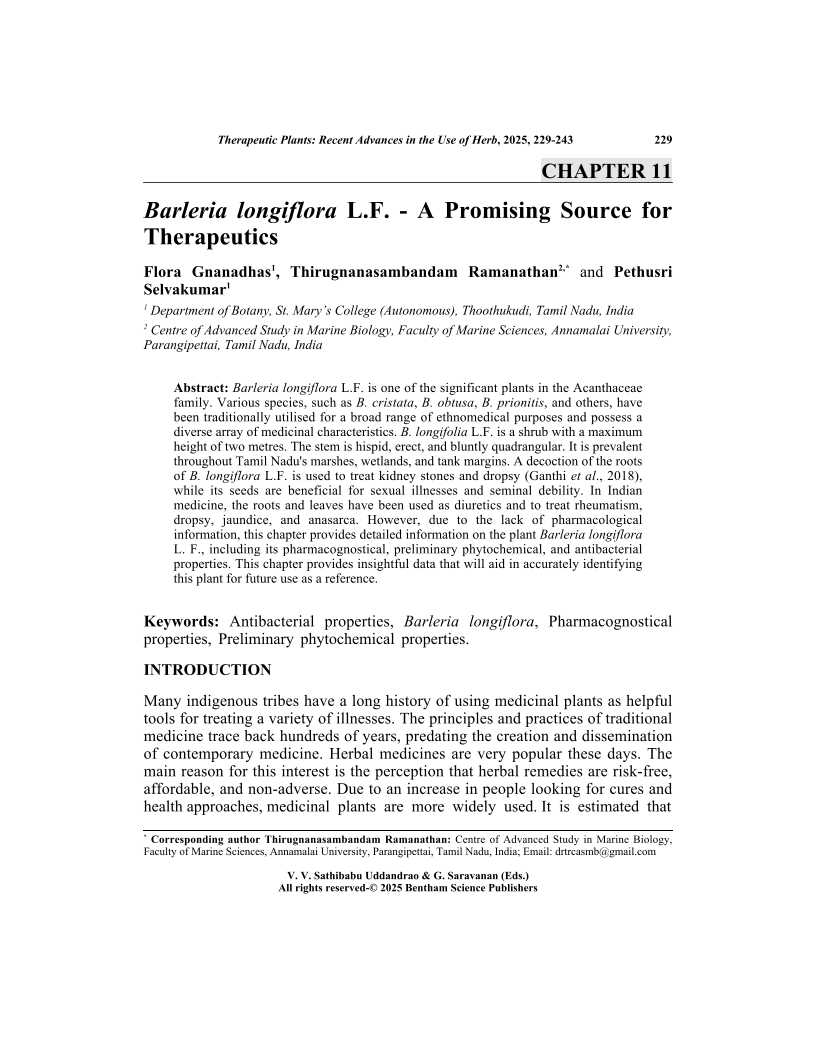 Barleria longiflora L.F. - A Promising Source for Therapeutics, Page 1 of 1