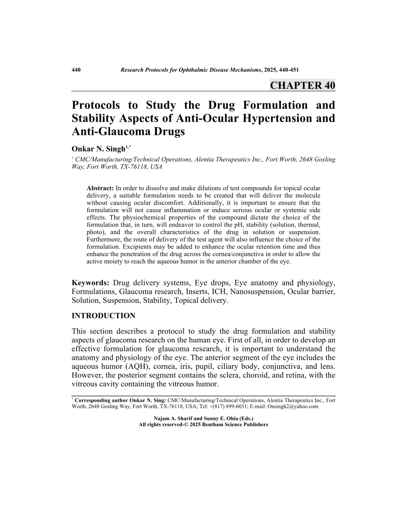 Protocols to Study the Drug Formulation and Stability Aspects of Anti-Ocular Hypertension and Anti-Glaucoma Drugs, Page 1 of 1