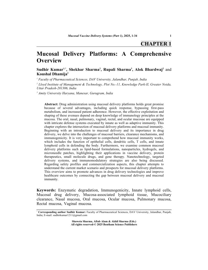 - Source: Mucosal Vaccine Delivery Systems: The Future of Immunization (Part 1) , pp 1-34