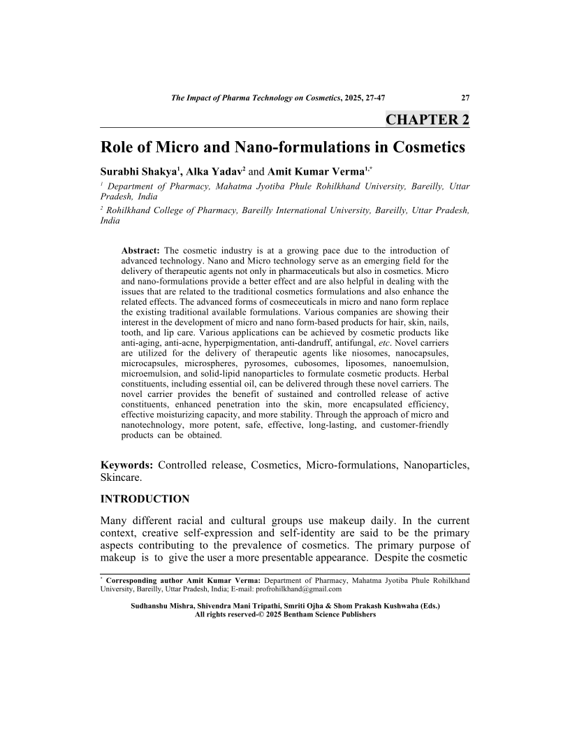 Role of Micro and Nano-formulations in Cosmetics, Page 1 of 1