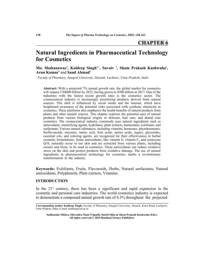 Natural Ingredients in Pharmaceutical Technology for Cosmetics, Page 1 of 1