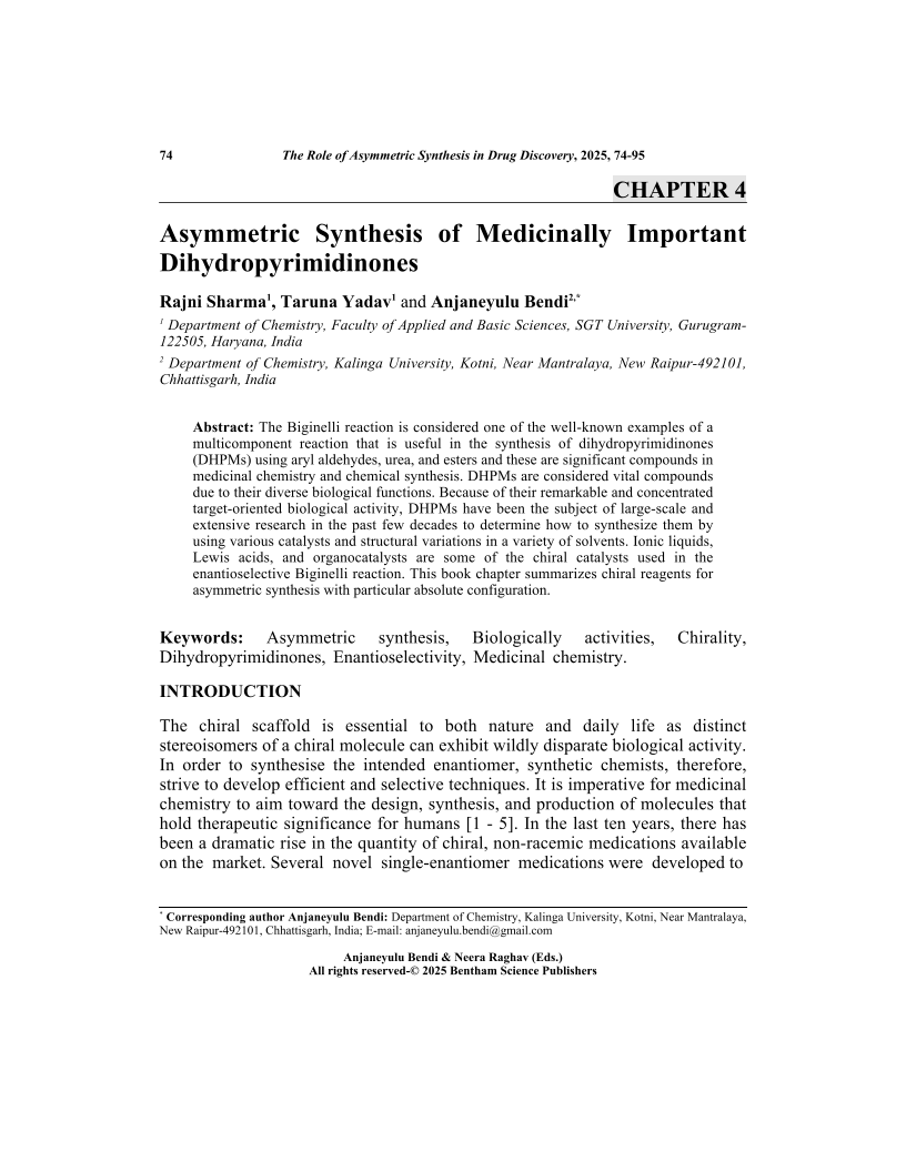 Asymmetric Synthesis of Medicinally Important Dihydropyrimidinones, Page 1 of 1