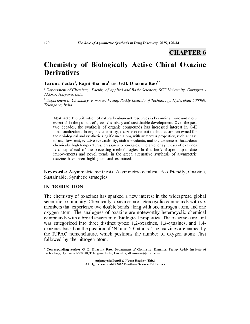 Chemistry of Biologically Active Chiral Oxazine Derivatives, Page 1 of 1