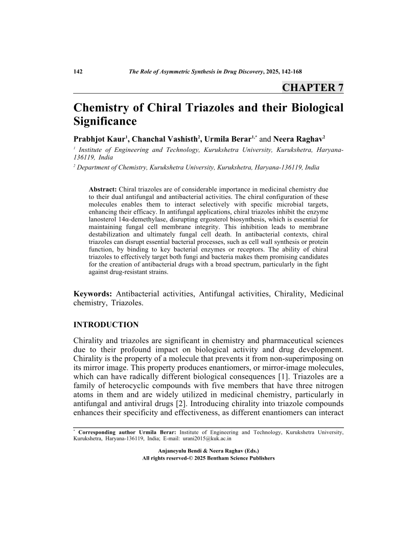 Chemistry of Chiral Triazoles and their Biological Significance, Page 1 of 1