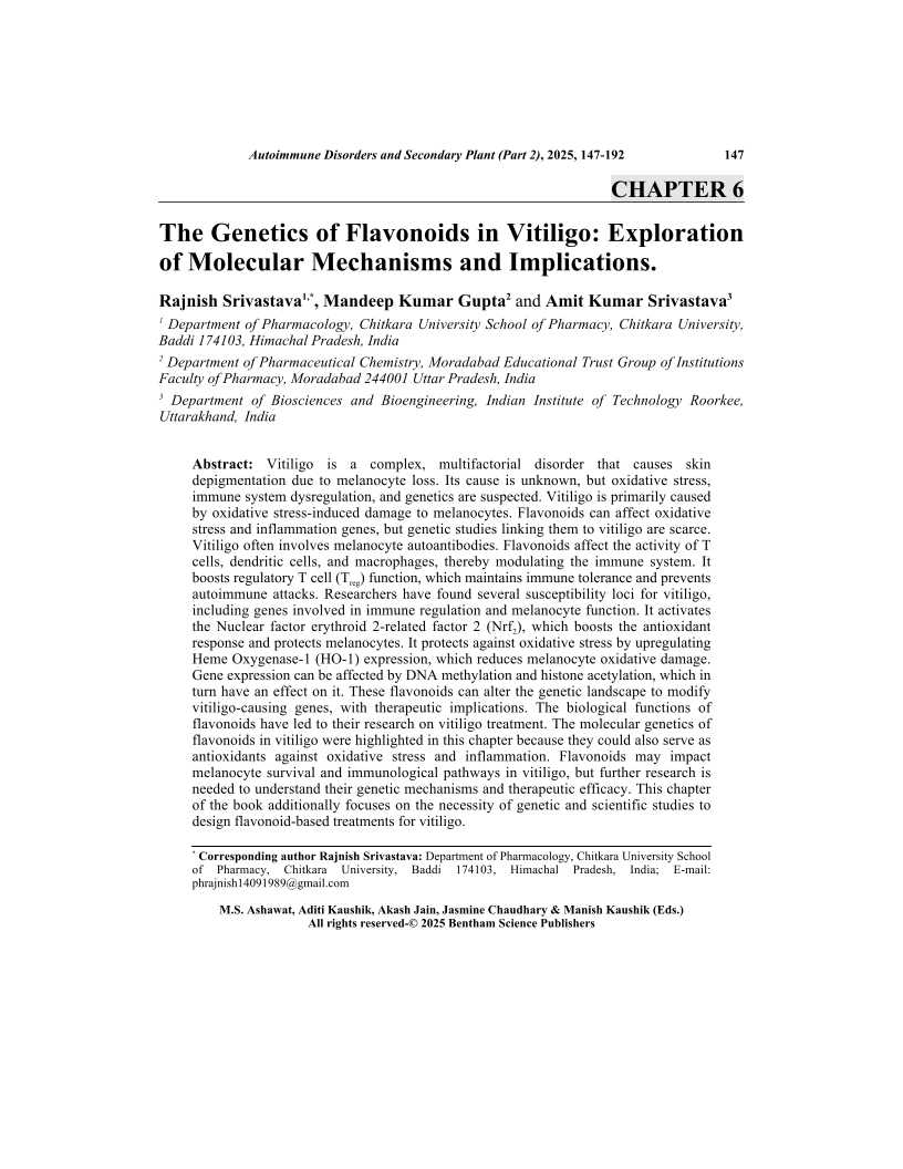 The Genetics of Flavonoids in Vitiligo: Exploration of Molecular Mechanisms and Implications., Page 1 of 1