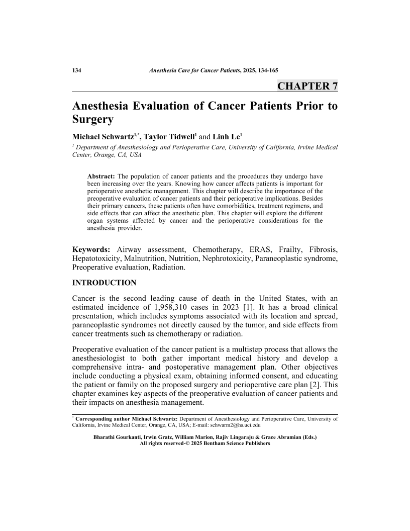Anesthesia Evaluation of Cancer Patients Prior to Surgery, Page 1 of 1