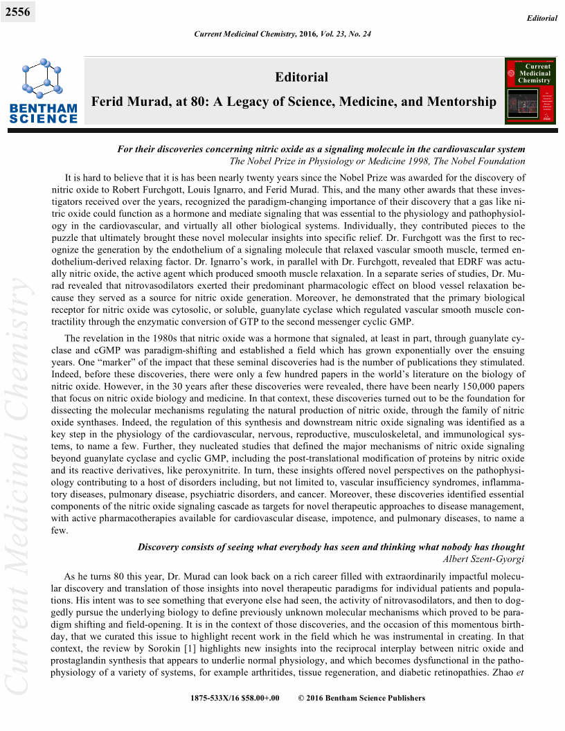 Editorial (Thematic Issue: Ferid Murad, at 80: A Legacy of Science, Medicine, and Mentorship), Page 1 of 1