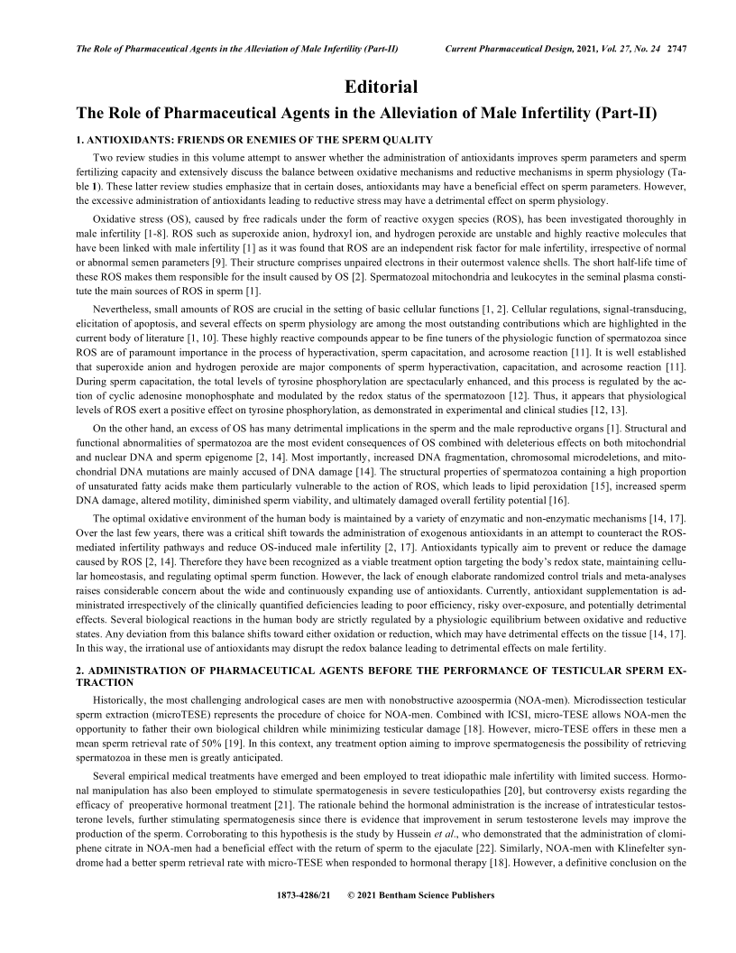 The Role of Pharmaceutical Agents in the Alleviation of Male Infertility (Part-II), Page 1 of 1